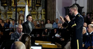 The orchestra comprises 23 musicians and includes solists Rafael Kyrychenko (piano) and trumpeter Pedro Dantas. The programme includes works by Dmitri Shostakovich, Edward Elgar, and the Portuguese composer Joly Braga Santos.