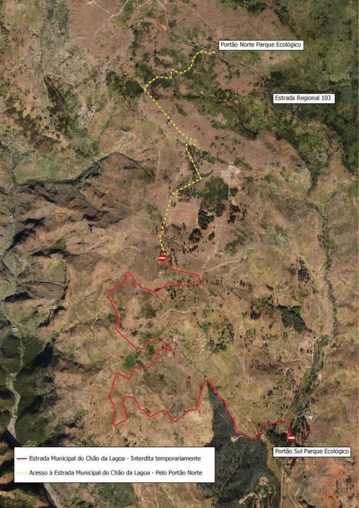 Access to Chão da Lagoa can, however, be made through the north gate of the Ecological Park, to the area indicated on the map.