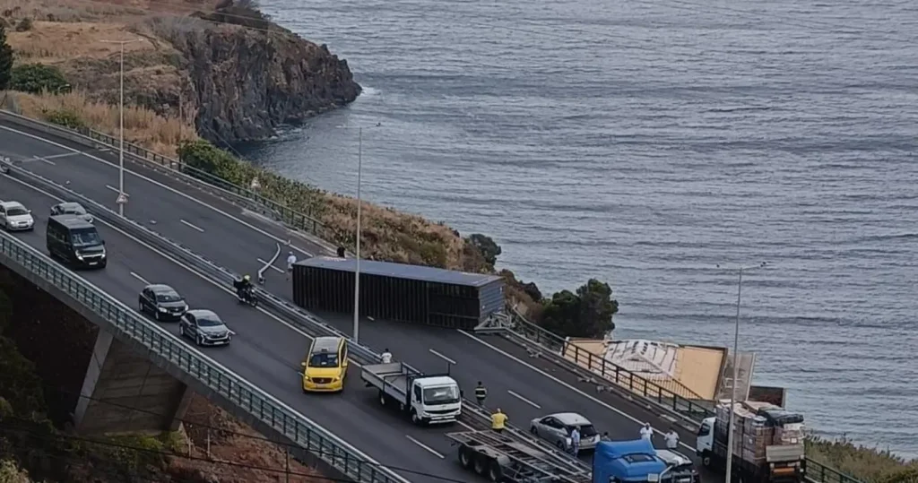 It was chaos on Madeira’s roads this evening from Cancela to Porto Novo as a 40-foot container broke free of its restraints and shot across the highway, demolished a barrier, and ended up on the other side of the via rapida, breaking a further safety barrier. What was amazing was…
